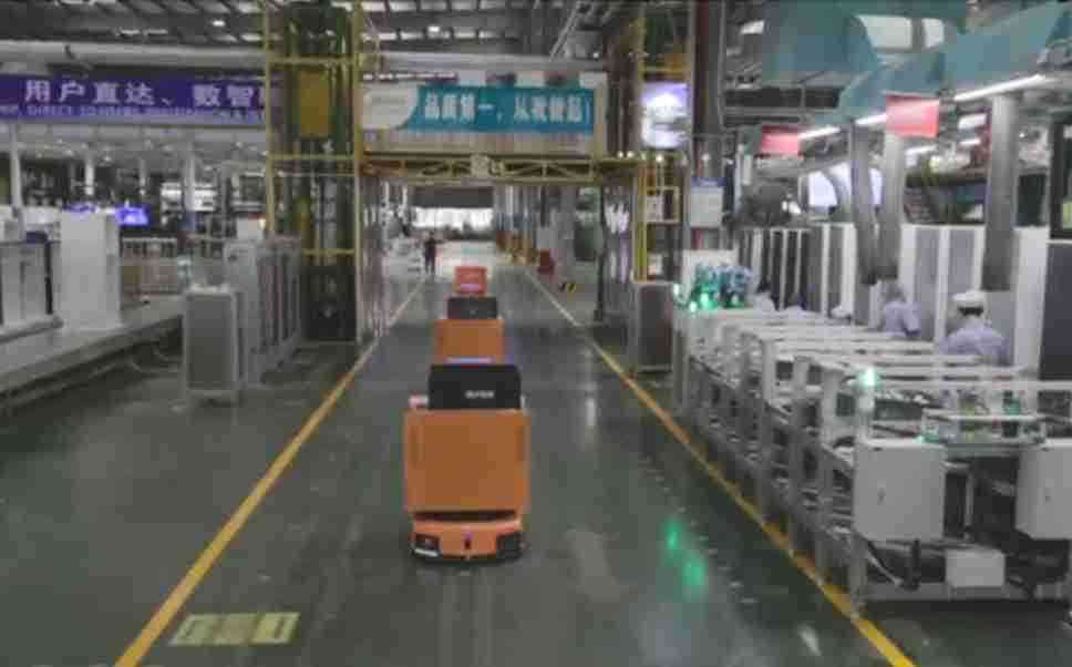 为车载冰箱物流配送打造的智能解决方案,,包含产中物流通过潜伏举升AMR搬运至线边,,,产后成品物流智能仓储,,流程包含产中物流智能齐套入库,,线边安灯叫料AMR智能配送至线边,,成品入库、、、出库,,,通过无人堆高车机器人,,,,智能仓储管理替代人工作业管理,,,实现更高存储、、、更高效率、、更具柔性化的解决方案。。